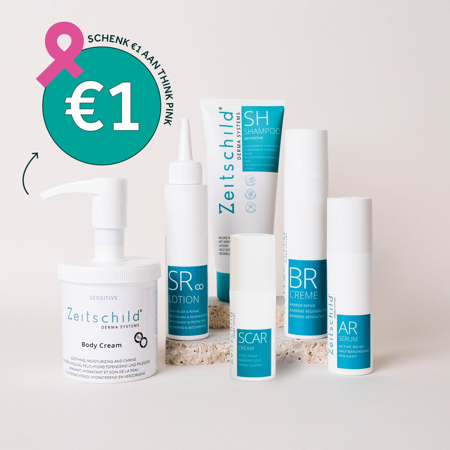 Bij elke aankoop van een product uit het Derma Systems gamma gaat er automatisch €1 naar Think Pink. Zo geef je jouw huid de zorg die ze verdient én steun je tegelijk een prachtig initiatief ✨